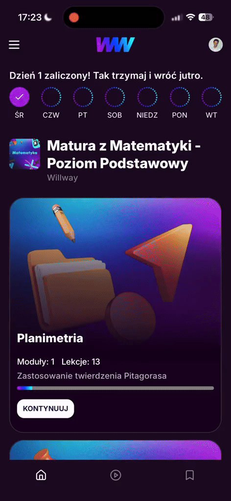 Willway to innowacyjna platforma do mikro-kursów. Zamiast długich lekcji, oferujemy praktyczną wiedzę w pigułce – esencjonalne podsumowania złożonych tematów. Uczysz się szybciej dzięki formatowi scrollowalnych, krótkich lekcji, podobnych do Twoich ulubionych platform rozrywkowych.